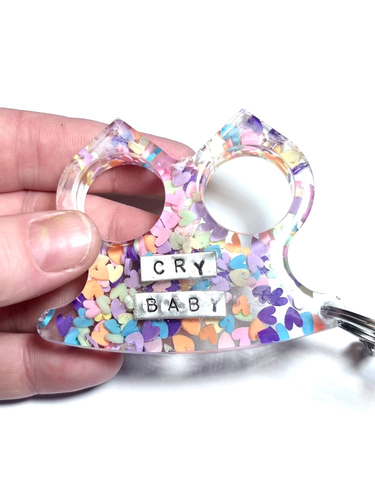 Hand poured, extra hard resin with pastel heart sprinkles set inside. These self defense keychains are extra special, with a tiny handmade metal charms set inside. Its durables made with love and feels tough in your hand.